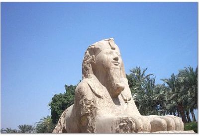 This is a Sphinx at Memphis. Memphis is an ancient site about